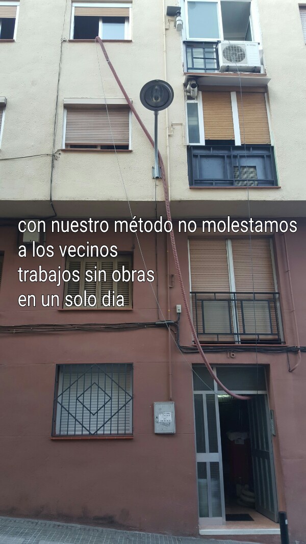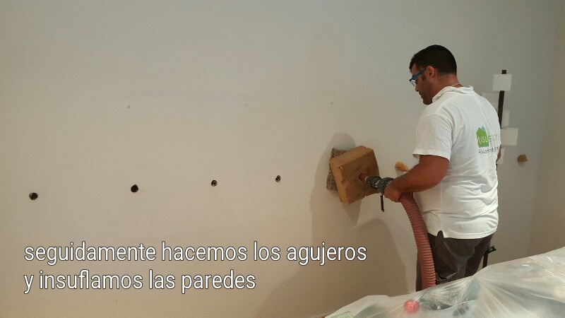 Aislamiento térmico de paredes y falso techo en una casa en barcelona: El equipo de aislamiento térmico de Aislaecotres se desplazó hasta valencia para insuflar celulosa en paredes y techo en una casa, en este caso concreto un falso techo de pladur de mas 15cm de espesor que pudimos acceder con la manguera especial a través de los huecos ya existentes de los ojos de buey encastrados en el falso techo, minimizando las molestias. En las imágenes que hemos seleccionado se puede apreciar el procedimiento con total claridad: desde la preparación de la máquina de trabajo,y que se quedó en el exterior de la vivienda, hasta la acción de insuflado de la celulosa tanto en techo como en paredes exteriores. Es simple y rápido, sin apenas obra puesto que únicamente es necesario abrir los agujeros necesarios hasta que la cámara que queremos rellenar con celulosa queda totalmente Rellena para toda la vida por supuesto con celulosa Ouateco, como aislante térmico natural y ecológico, no mengua ni se apelmaza con el tiempo.
